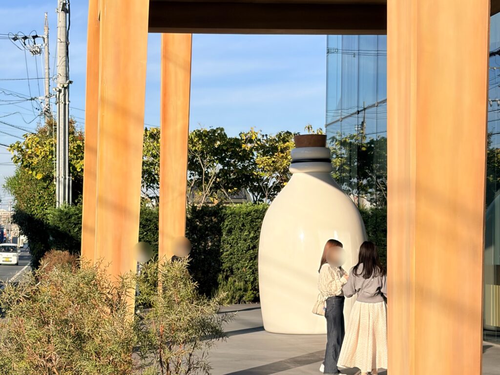 フォトスポットには、牛乳瓶のオブジェも!女の子やカップルが撮っていました!