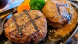 店員さんが目の前でハンバーグを半分に切り、鉄板でジュワ〜ッと仕上げてくれる演出は何度見てもワクワクします。